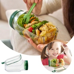 Frasco de almacenamiento de alimentos para ensaladas de vidrio portátil, contenedor de cápsula de ensalada sin BPA Original, lado abierto con tapa